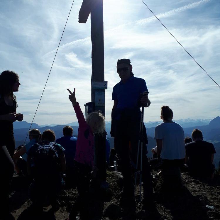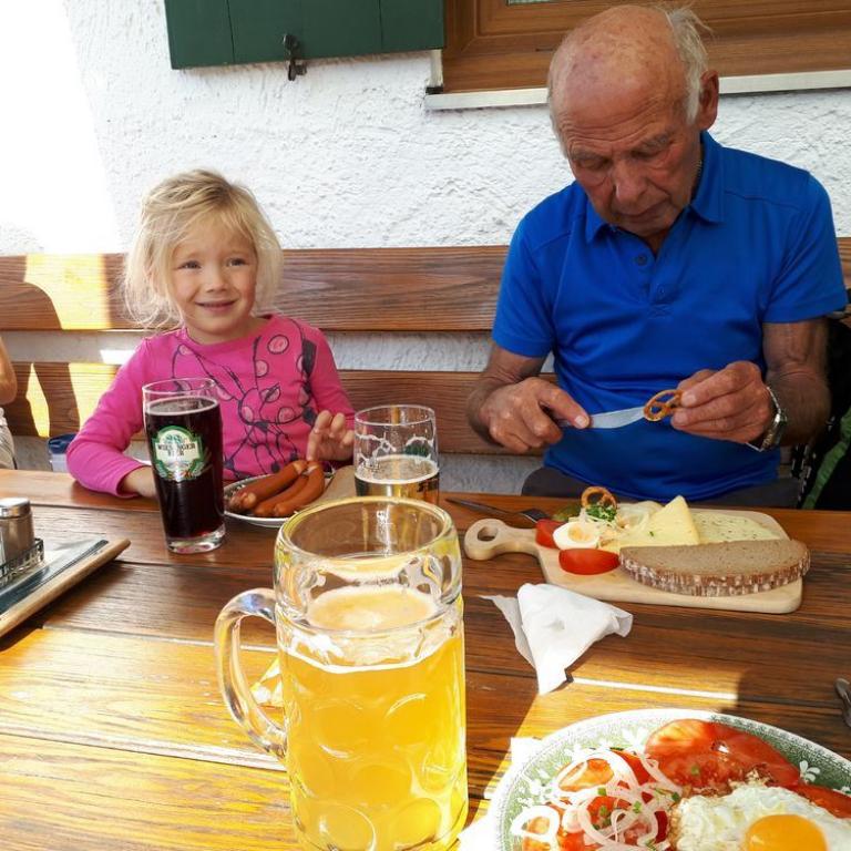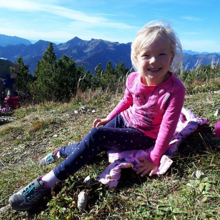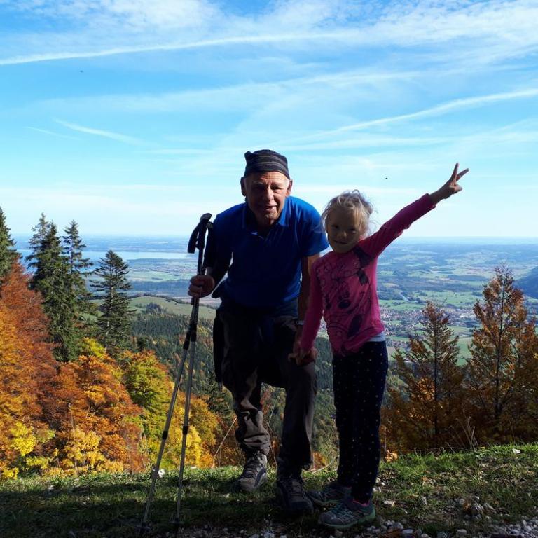 Auch heute hatten wir wieder traumhaftes Bergwetter. Nach dem Frühstück fuhren wir mit Opa zum Hochplattenlift in Marquartstein. Mit dem alten Sessellift gelangten wir zur Bergstation auf knapp über 1040 Hm. Von hier wanderten wir zuerst durch den Wald, bis wir immer wieder eine schöne Aussicht auf Grassau, Hochgern und den Chiemsee hatten. Weiter oben erreichten wir eine kleine Alm. Hier fanden wir einen schmalen Trail der nach links von der Forststraße abzweigte. Laut meiner Locus Map App sollte dieser Weg bis direkt unterhalb des Gipfels führen. Emma war unsere Pfadfinderin und ging voraus. Hinten nach wanderte noch eine Familie. Emma suchte stolz den Weg und führte uns durch Latschen nach oben, bis wir den vielbesuchten Gipfel erreichten. Knapp 600 Höhenmeter schaffte meine kleine Maus. Stolz stand sie am Gipfel und freute sich über ihren 157. Gipfelsieg :-) Wir genossen eine kleine Brotzeit und vor allem den traumhaften Ausblick, bevor wir über den Normalweg abstiegen. Emma war begeistert von den kurzen Kletterstellen bis zur Hochplattenscharte. Ab hier wanderten wir auf dem Forstweg zurück bis zur Staffnalm, die restlos überfüllt war. Wir fanden noch einen Platz und ließen uns die Radler und Käse und Würstl schmecken :-). Danach fuhren wir mit der Sesselbahn zurück zum Tal. Opa fuhr mit Emma im Auto nach Grassau und ich legte einen 5 km Tempolauf, ebenfalls zurück zur Wohnung, in 19:15 Minuten ein. In Grassau packten wir unsere Sachen ins Auto und Emma und ich machten uns wieder auf die Heimreise