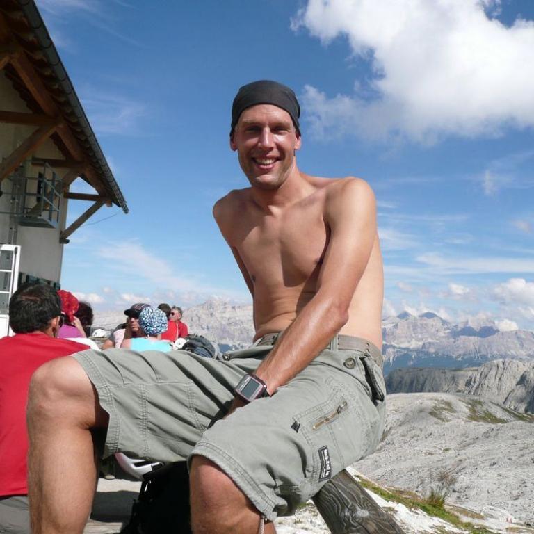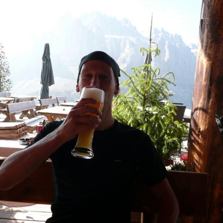 Vom Austieg waren es noch ca. 20 min bis zur Hütte. Die Aussicht war gigantisch, aber in der Sonne kamen wir schon ganz schön ins Schwitzen. Auf der Hütte gabs zur Stärkung natürlich wieder ein Weißbier. Viele Wanderer und Kletterer versammelten sich auf der Hütte. Nach kurzer Rast starteten wir auch schon den nächsten Aufstieg.