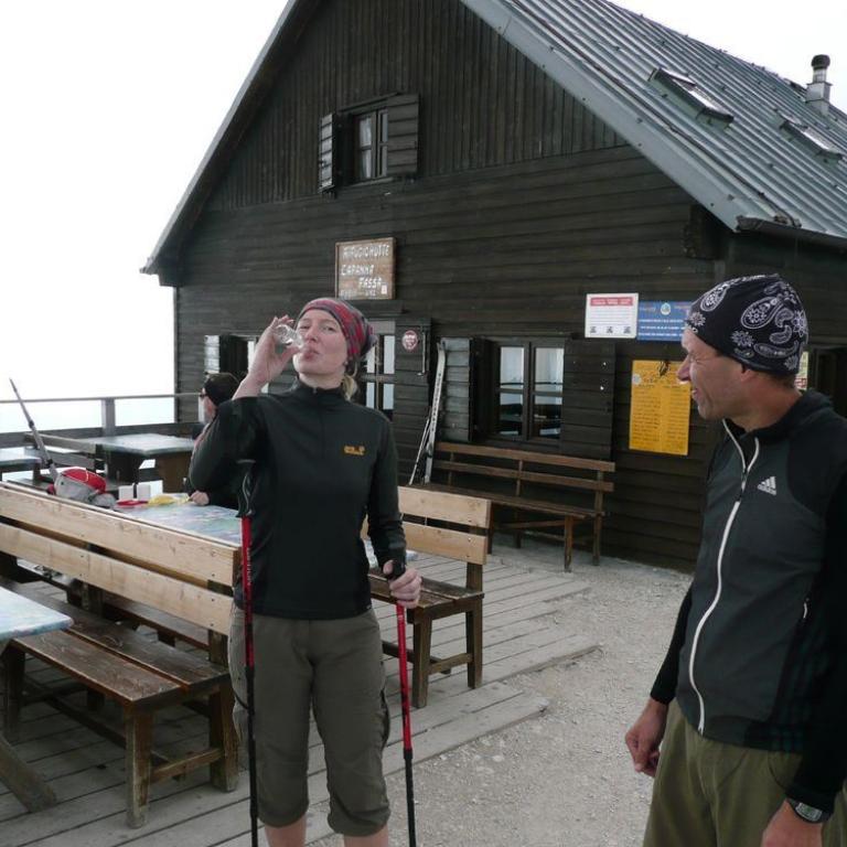 Um halb 7 erreichten wir wieder die Hütte. Duschen gab es hier nicht, nur eisiges Wasser mit dem wir unser Gesicht und Füße (die hatten es nötig .-) waschen konnten. Das Abendessen war lecker und die Wirtsleute sehr freundlich. Nach ein paar Gläschen Wein legten wir uns um 22 Uhr schlafen.