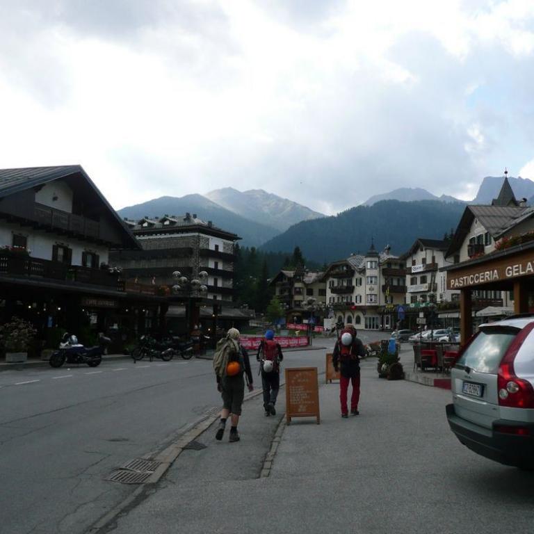 In San Martino di Castrozza schien wieder die Sonne. Zuerst schlenderten wir durch den beschaulichen Ort. In einer Pizzaria konnten wir ein Taxi bestellen, das uns für 150 Euro zurück nach St. Christina fuhr. Hier bekamen wir auch gleich ein günstiges 3 Sterne Garni. Wir waren froh um eine Dusche und frische Kleidung hatten wir im Auto deponiert. Jeder fühlte sich wieder frisch und am Abend gingen wir noch gemeinsam in eine gute Pizzaria, wo es Pizza und Nudeln mit Salat gab. 6 Tage Dolomitendurchquerung lag hinter uns und alle waren Stolz dies geschafft zu haben. Schließlich brachten wir in 6 Tagen fast 7000 Höhenmeter hinter uns. Natürlich schmiedeten wir auch schon wieder Pläne für Touren im nächsten Jahr ....