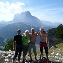 Obwohl Hans, Wolfi, Brigitte und ich in den letzten 6 Tagen die Dolomiten von Nord nach Süd durchquert hatten, wollten wir trotzdem noch den schwierigen Klettersteig Via Ferrata Sandro Pertini meistern. Noch immer nicht genug von den Bergen und immer noch mit frischen Beinen fuhren wir ins Langental über Wolkenstein. Zuerst wanderten wir durch das herrliche Tal, aber nach knapp 20 Minuten erreichten wir auch schon den Einstieg.