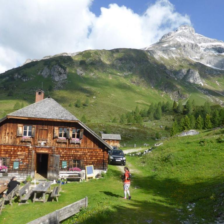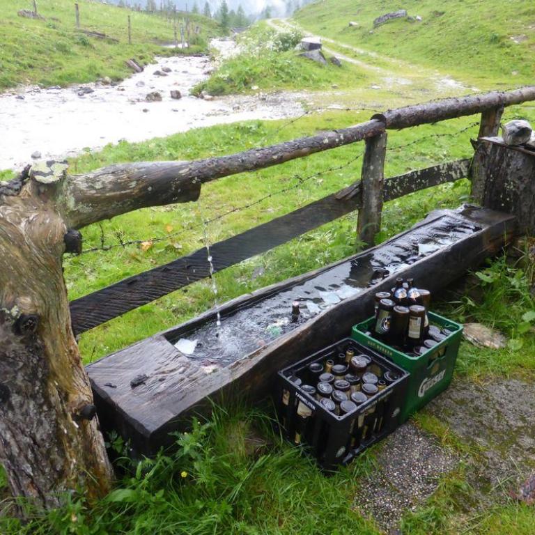 Am Dienstag feierten Brigitte und ich noch meinen Geburtstag auf dem Guns`n Roses Konzert in München. Leider mit wenig Schlaf quälten wir uns am Mittwoch durch die Arbeit um am späten Nachmittag mit Emma in die Flachau aufzubrechen. Trotz Müdigkeit kamen wir ganz gut voran, so dass wir ohne größeren Stau nach 3 Stunden unser Ziel erreichten. Kurz vor dem Tauerntunnel bogen wir zum Tauernhöhenweg ab. Hier hinterlegte uns Lobbe den Schlüssel für die Schranke unter einem Stein, welchen natürlich Emma als Erste fand :-) Eine steile Forststraße führte uns nach oben. Immer wieder gingen wir auf und es krachte und schepperte. Endlich erreichten wir die von Lobbe organisierte, urige, 300 Jahre alte Hütte. Wir wurden von den Scheifls und Lobbes empfangen. Die Gegend ist traumhaft, das Wetter herrlich, die Berge hoch, das Gras grün, das Bier kalt Wir waren sofort begeistert. Wir räumten unsere Sachen ins Zimmer und bekamen gleich ein leckeres Schweiners serviert. Dazu ein kühles Bier, was will man mehr. Die müden Krieger Emma und der kleine Johannes gingen dann irgendwann ins Bett und wir genossen die Ruhe und Einsamkeit hier oben in den Bergen mit ein paar Bierchen und lustigen Geschichten.