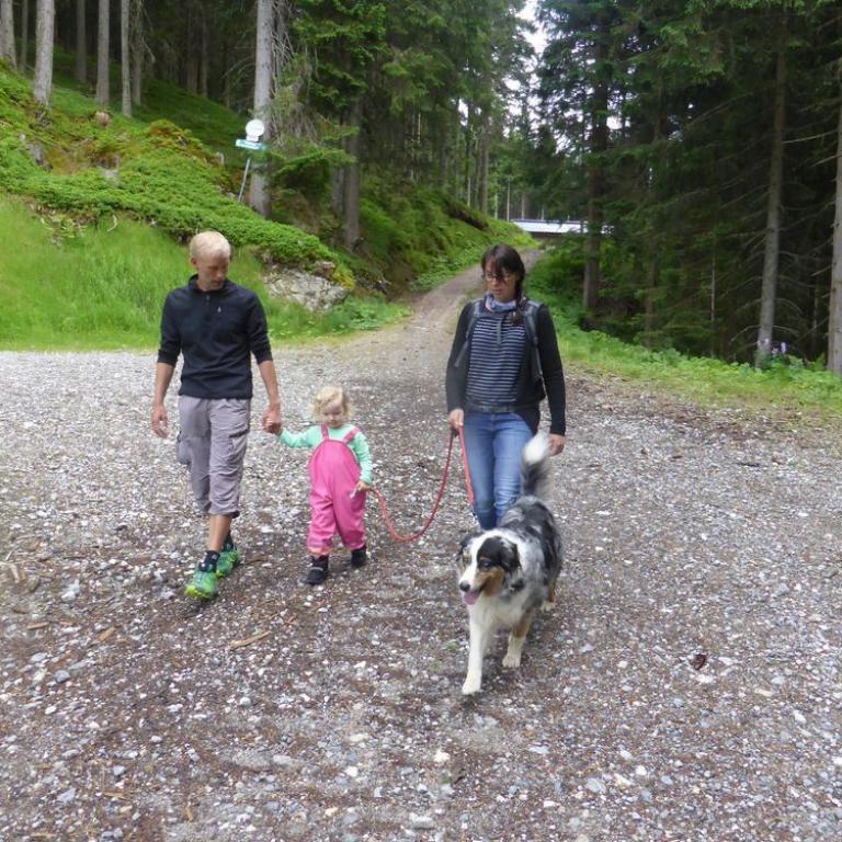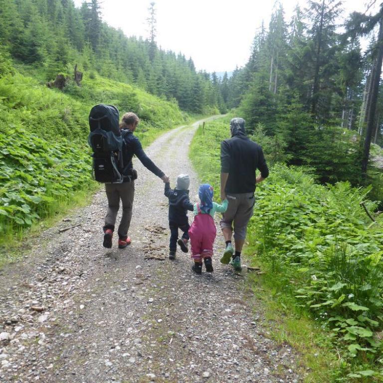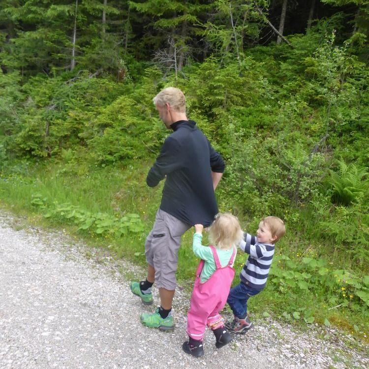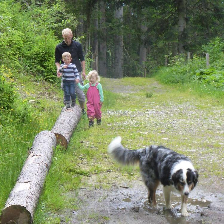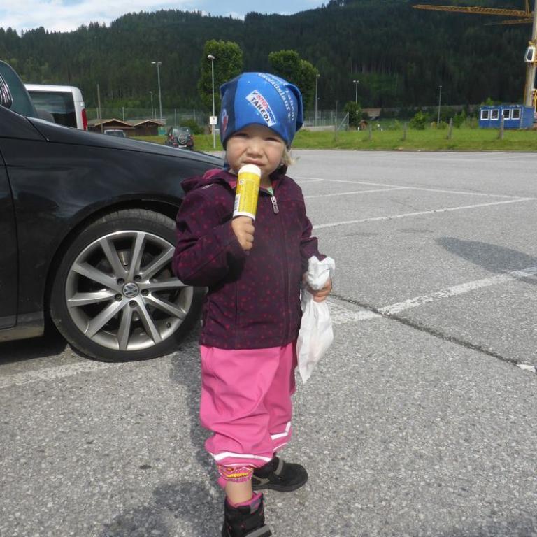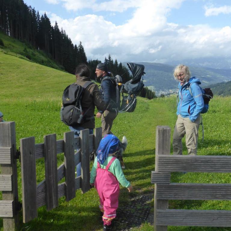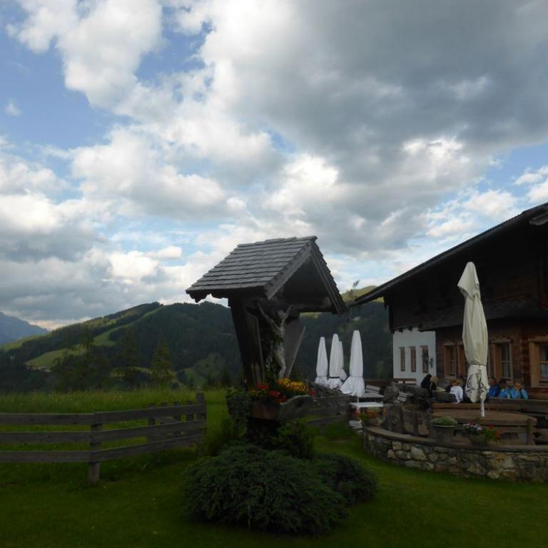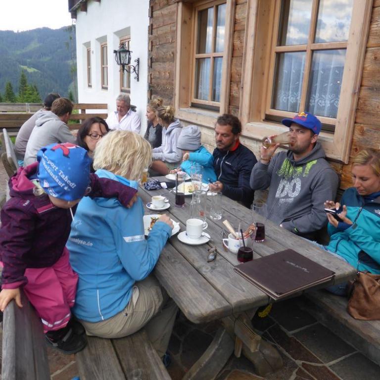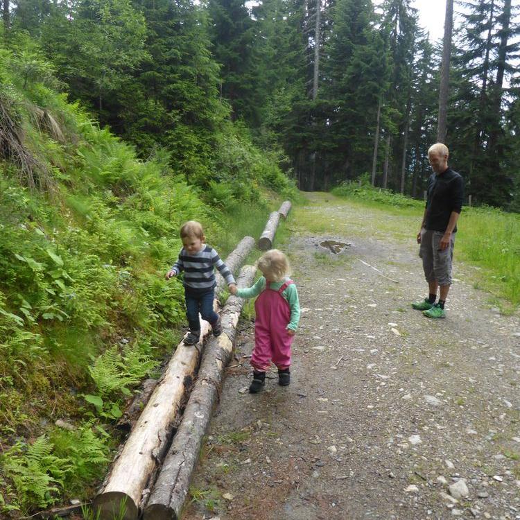 Nach einer kurzen Pause fuhren wir alle nach Flachau zuerst zum Einkaufen und dann eine Serpentinenstraße bis zum Sattelbauer auf 1279 m. Hier parkten wir und wanderten auf einem Rundweg. Die Kinder hatten viel Spaß zu laufen, auf Baumstämmen zu balancieren, in den Matsch zu springen und dann beim Gasthaus Sattelbauer am Spielplatz zu spielen. Wir aßen zu Abend und fuhren erst um halb 9 Uhr wieder zurück zur Hütte. Den Abend ließen wir wieder bei ein paar Bier und Schnapserl ausklingen.