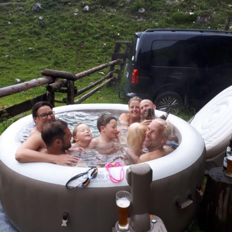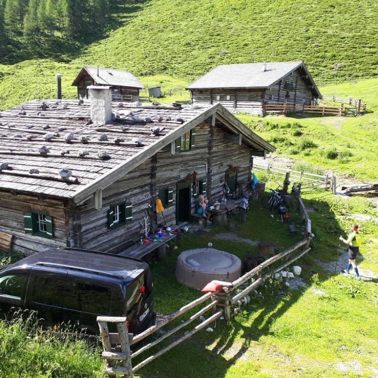 Leider war der 30. Juni nach 20 Jahren mein letzter Arbeitstag bei Harman. Zuhause mussten wir noch einiges Versicherungstechnisch abklären und kamen somit erst um 19 Uhr in Schwarzach los. Die Kinder störte dies weniger, da beide auf dem Tablet Filme ansehen durften bis sie eingeschlafen waren. Um 23 Uhr erreichten wir dann Flachau. Über kleine Straßen kamen wir zur Schranke, wo Martin den Schlüssel versteckt hatte. Ab hier führte uns eine kleine Forststraße bis zur alten Selbstversorgerhütte aus dem 18. Jahrhundert neben dem Pleißlingbach. Die Scheifls und Schmids empfingen uns mit einem kühlen Bier und einem Schnapserl :-)