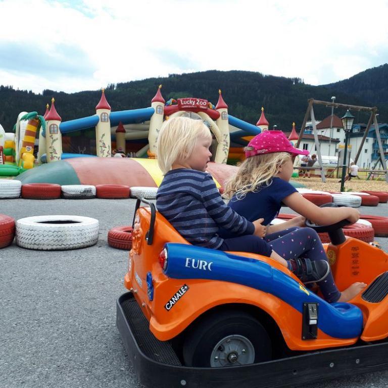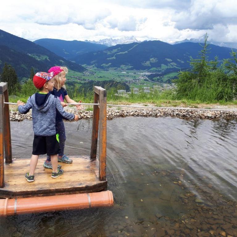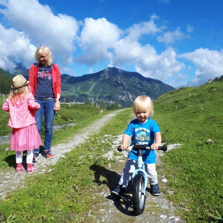 "Wir haben noch lange nicht genug" sangen schon die Onkelz, deshalb drauf auf den Lauf :-). Martin und ich liefen um halb 8 los, zuerst bis zur Südwienerhütte auf 1802 m und dann auf den Spirzinger mit 2066 m. Wir hatten eine Traumaussicht auf das Karwendel und die Tauern. Über coole Trails liefen wir wieder zurück zur Hütte. Insgesamt waren wir knapp 2 Stunden, 11 Kilometer und 800 Höhenmeter unterwegs. Nach einer kurzen Dusche und kleinem Frühstück fuhren wir nach Flachau. Hier gab es ein Spieleparadies für Kinder. Hüpfburgen, Rodelbahnen und Klettergerüste. Nach einem Mittagssnack fuhren wir auf einer kleinen Panoramastraße bis zum Waldgasthof, wo der Flori`s Erlebnispfad startete. Die Zwerge waren von dem erlebnisreichen Rundweg begeistert. Es gab eine Kletterwand, Flying Fox, Naturkino und Schaukeln. Nebenbei mussten die Kinder an jeder Station ein Rätsel lösen. Im Waldgasthof durften sich die Kleinen eine Überraschung abholen. Hier kehrten wir auch kurz ein, bevor es wieder zurück zur Hütte ging. Martin grillte uns am Abend leckere Steaks und Würstl