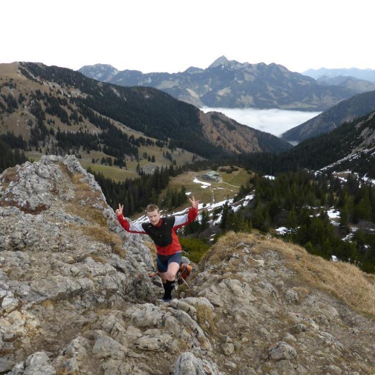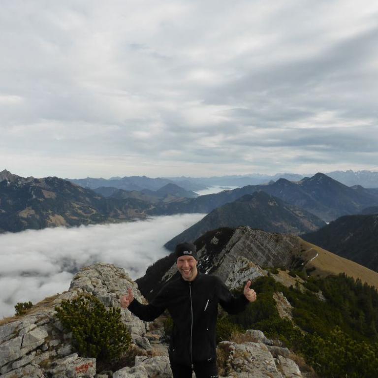 Schon früh waren wir auf den Beinen. Wir versorgten unsere Mädels und Frühstückten gemütlich. Das Wetter sah noch immer ganz gut aus. Ein paar Wolken gab es am Himmel, aber immer noch perfektes Wander - bzw. Laufwetter. Kurz einen Plan ausgearbeitet und fertig war die Vormittagsbeschäftigung :-) Christoph und ich starteten zum Berglauftraining und die Mädels zur Wandereinheit. Wir liefen als erstes über Forstwege und dann Trails auf den Taubenstein (1692 m). Von dort liefen wir wieder in eine Senke und dann weiter auf den Rauhkopf (1689 m). Weil es noch nicht reichte liefen wir wieder begab bis wir den nächsten Berg fanden, die Aiplspitz (1759 m). Der Schlußanstieg war teilweise Seilversichert und ausgesetzt. Von den Gipfeln hatten wir eine herrliche Aussicht auf die umliegenden Berge. Ins Tal sahen wir nicht, da diese im Nebel lagen. Die Mädels wanderten zur gleichen Zeit fast bis zum Taubenstein. Später reinigten wir noch die Hütte, packten alles ins Auto und fuhren zum Spitzingsee, wo wir das gemütliche Wochenende bei gutem Essen in der Wurzhütte Revue passieren ließen. Solche Wochenenden machen einfach Lust auf mehr :-)