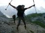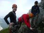 Ein weiterer Kurs stand auf dem Programm: Aufbaukurs im Alpinklettern mit unserem Kursleiter Werner, Brigitte, ihrem Bruder Hans, meine Wenigkeit und 2 weitere Alpenvereinsmitglieder Michael und Michael im Wettersteingebirge auf der Meilerhütte. Nach dem fast 5 stündigem Aufstieg übten wir noch Standplatzbau und wie man in einer Seilschaft funktioniert. Gleich am 2. Tag stand eine große Klettertour an, da nur an diesem Tag das Wetter beständig sein sollte. Wir bezwangen in knapp 15 Seillängen und 12 Stunden, wo wir an unsere Grenzen gingen, die Partenkirchener Dreitorspitze NO-Gipfel mit 2634 m. Am Samstag wurde nochmals Standplatzbau, gehen mit dem Halbseil bei einer 3 er Seilschaft und Prusikrettung geübt. Am Nachmittag gingen wir noch zum Sportklettern, bevor am Abend das ganze mit einer zünftigen Hüttengaudi gefeiert wurde und wir dann am Sonntag wieder abstiegen.