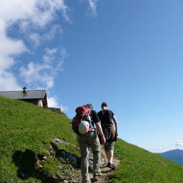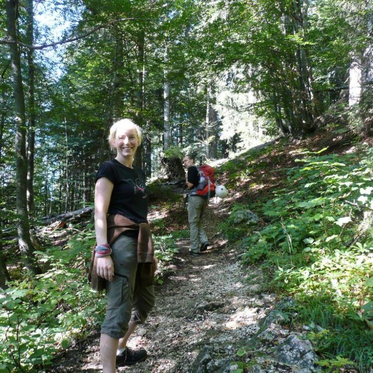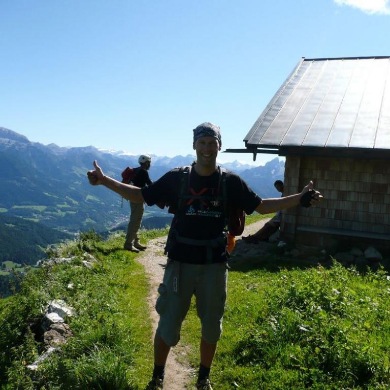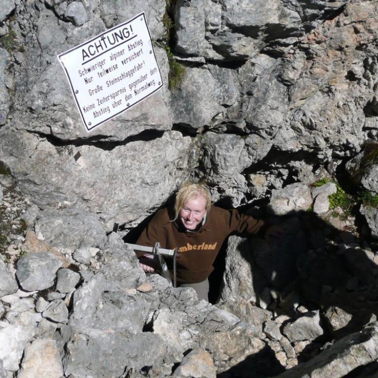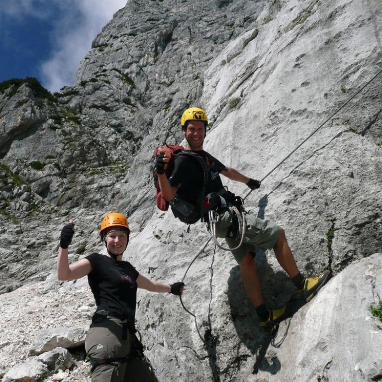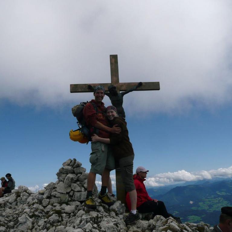 Brigitte, Wolfgang und ich waren schon um halb 6 "On Tour". Zuerst mit dem Auto Richtung Salzburg nach Marktschellenberg. In Ettenberg parkten wir unser Auto und los gings mit Rucksack und Klettersteigset bewaffnet auf dem Forstweg bis zum Almgebiet Scheibenkaser. Hier schien herrlich die Sonne und 20 Minuten später standen wir auch schon am Einstieg des Klettersteiges. Die Ausrüstung angelegt und hinein in den Steig. Es ging gleich mit einer saftigen C-Stelle los. Immer weiter hangelten wir uns die Stahlseile nach oben. Der Steig machte uns sehr viel Spaß. In luftiger Höhe gab es immer wieder super Fotoshots mit Blick auf den Watzmann in Wolken. Nach knapp 2 Stunden im Steig erreichten wir den Gipfel des Berchtesgadner Hochthrons. Wir hatten eine herrliche Aussicht auf die umliegenden Berge und das Wetter war sehr sonnig. Durch den gestrigen Temperatursturz lag sogar ein wenig Schnee auf dem Gipfel und das im August. Wir wanderten dann zum Störhaus wo es eine Brotzeit mit Weißbier gab. Über das unbeschilderte, teilweise Stahlseil gesicherte Mittagsloch stiegen wir ab, da der Normalweg gesperrt war. Dort hatte es einen Todesfall durch Herzinfarkt gegeben und ein Hubschrauber musste erst das Opfer bergen. Der Abstieg gestaltete sich nicht so einfach, da teilweise Kletterstellen dabei waren und auch immer wieder Steine von oben losgetreten wurden. Um ca. 15 Uhr erreichten wir wieder die Scheibenkaseralm, wo wir wieder auf dem Aufstiegsweg abstiegen.