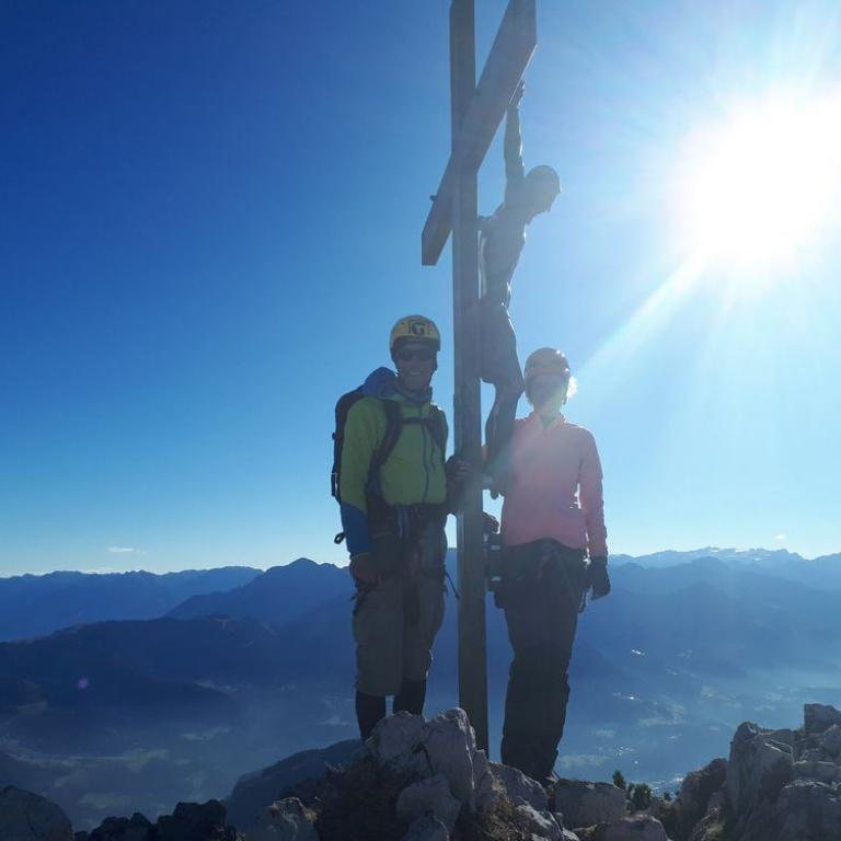 Fazit: Zum 4. Mal durchstieg ich die Ostwand des Berchtesgadener Hochthrons und wieder bei Traumwetter. Wie die Male vorher machte der pfiffige Klettersteig viel Spaß und sicher komme ich ein 5. Mal zurück :-)