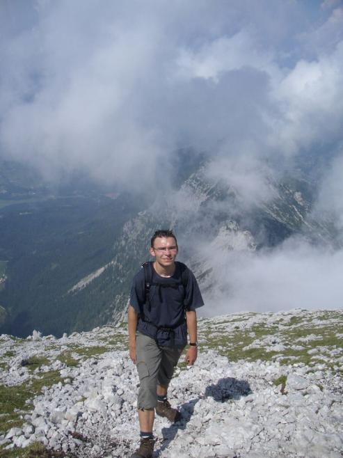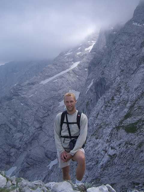 Hier machten wir Brotzeit und auch die Wolken gaben die Sonne frei. Da wir schon relativ spät dran waren entschlossen wir uns nicht auf den Hohen Göll (2522 m) zu gehen, sondern gleich über den Schustersteig zum Purtscheller Haus (1692 m) abzusteigen. Dort genehmigten wir uns dann eine Radler. Da wir den letzten Bus am Ahornkaser zurück zum Kehlsteinhaus - Busparkplatz versäumten, mussten wir auf der Straße zu Fuß zurückmarschieren. Die letzten 3-4 km konnten wir per Anhalter mit einer netten Dame mitfahren.