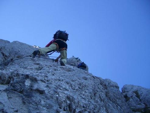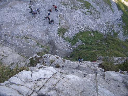 Nach knapp 1 1/2 Stunden erreichte ich den Einstieg des Klettersteiges (1020 m Höhe). Schon eine Menge Leute waren im Klettersteig unterwegs.