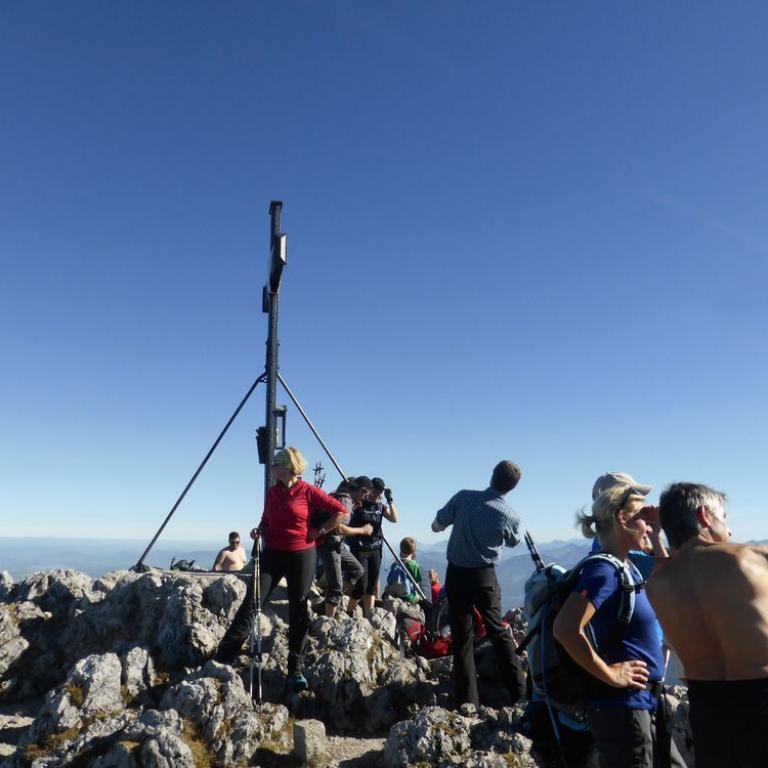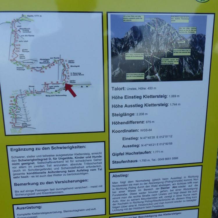 2015 kletterte ich zum letzten mal den Pidinger. Es wurde also wieder Zeit für meinen Lieblingsklettersteig. Das Wetter sollte super werden und das wurde es auch :-) Mit Matze, den ich Zuhause abholte, fuhr ich schon früh nach Urwies bei Piding, wo der Parkplatz zum Pidinger Klettersteig ist. Um 8 Uhr starteten wir mit dem MTB zum Klettersteig Einstieg, den wir auch 47 min später erreichten. Wir stiegen schnell ein und ballerten auch gleich richtig los. Wir ließen alle, die mit uns einstiegen, schnell hinten uns :-) Wie immer machte der Klettersteig so richtig Spaß. Zuerst waren wir noch im Schatten, aber nach und nach kam die Sonne in den Steig und es wurde wärmer. Wir liefen so richtig hoch und an den leichteren Stellen verzichteten wir auf die Sicherung. Nach 2h 15 Minuten kamen wir auch schon zum Ausstieg. So schnell war ich noch nie :-) Auf dem Gipfel des Hochstaufen 1771m ging es zu wie am Stachus... Im Staufenhaus standen die Wanderer Schlange, so wie wir auch. Mit einem Weißbier bewaffnet machten wir es uns in der Sonne bequem. Auf dem Normalweg stiegen wir wieder ab und machten auch noch kurz in der Steineralm halt wo wir uns ein Käsebrot genehmigten. Mit dem MTB fuhren wir dann zurück zum Auto und machten uns auf die Heimreise.