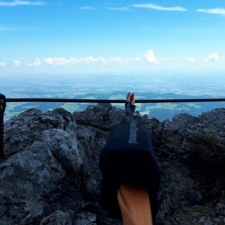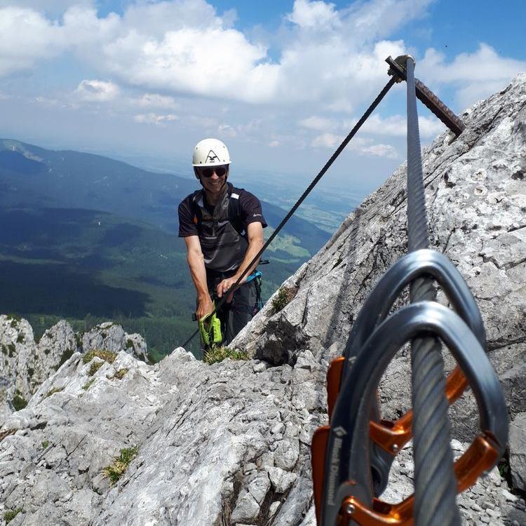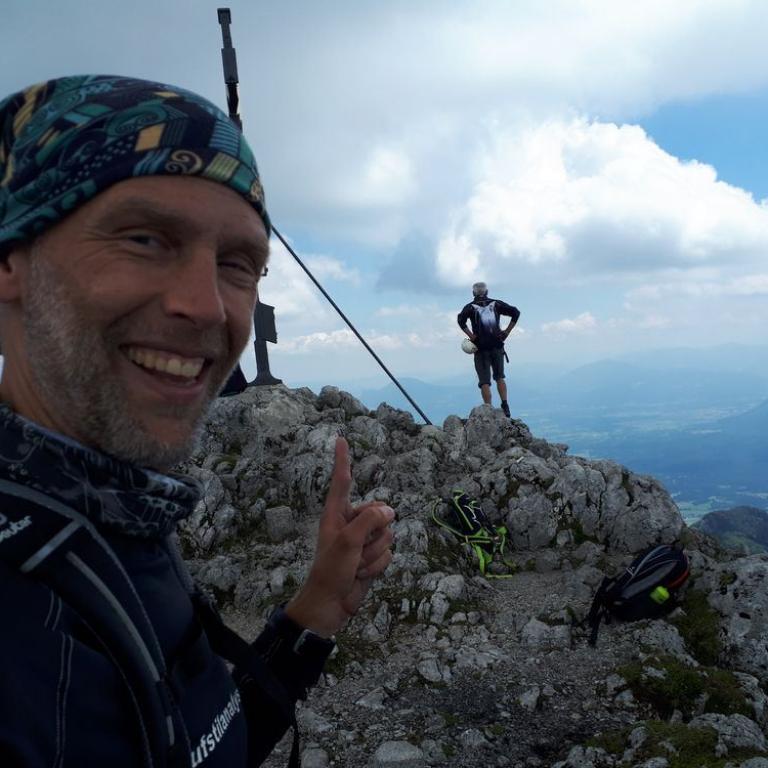 Und wieder Pidinger :-) Zum 9. Mal wollte ich den pfiffigen Klettersteig durchsteigen. Dieses Mal mit Hans, für den es eine Pidinger Premiere war. Um 8 Uhr starteten wir am Wanderparkplatz Urwies. Eine knappe Stunde später standen wir auch schon am Einstieg des D-Klettersteiges. Wir zogen uns an den Stahlseilen nach oben. Aber auch die Griffe am Felsen benutzten wir fleißig. Nach der Einstiegswand kam eine Gehpassage, bis es in die nächste Wand ging. Das Wetter war ideal, auch wenn immer wieder ein paar harmlose Wolken aufzogen. Vor der letzten Wand machten wir Rast und Brotzeit auf dem kleinen Bankerl. Der Steig machte wie immer viel Spaß und nach 4 Stunden Aufstieg ab Parkplatz standen wir am Gipfel des Hochstaufens mit seinen 1771 m. Im Reichenhaller Haus, der Alpenvereinshütte knapp unter dem Gipfel gab es Gipfelbier und Erbsensuppe, bevor wir an der Nordseite über die Steiner Alm abstiegen und uns wieder auf den Nachhauseweg machten.