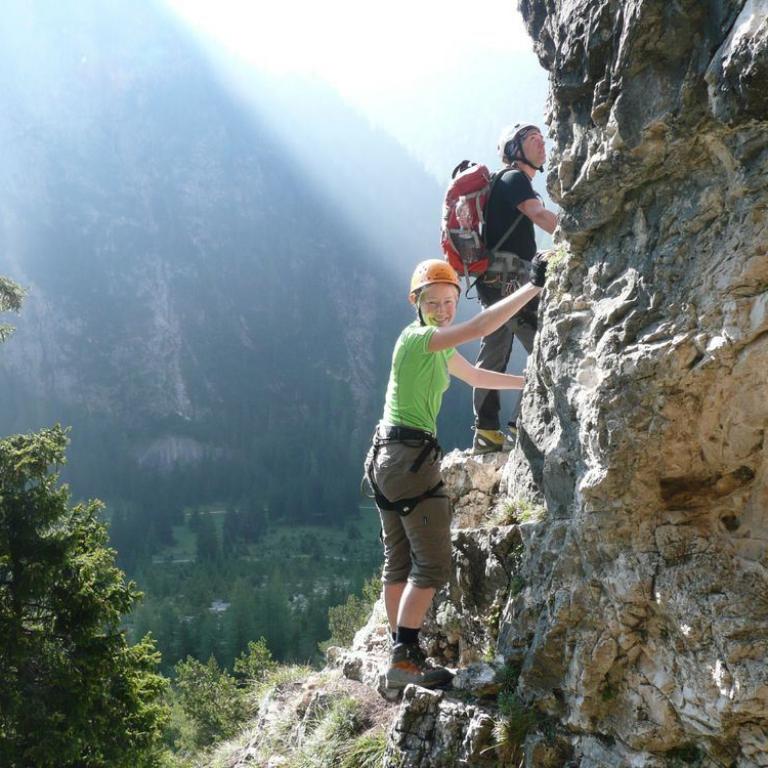 Luftiger, perfekt gemachter Klettersteig am Beginn des wunderschönen Langentales. Durch die vielen guten Einlagen (Brücke und ausgesetze Passagen) wurde eine sehr gute talnahe Alternative zu den Dolomitensteigen geschaffen, die hohen Spassfaktor garantiert.