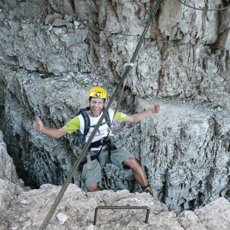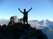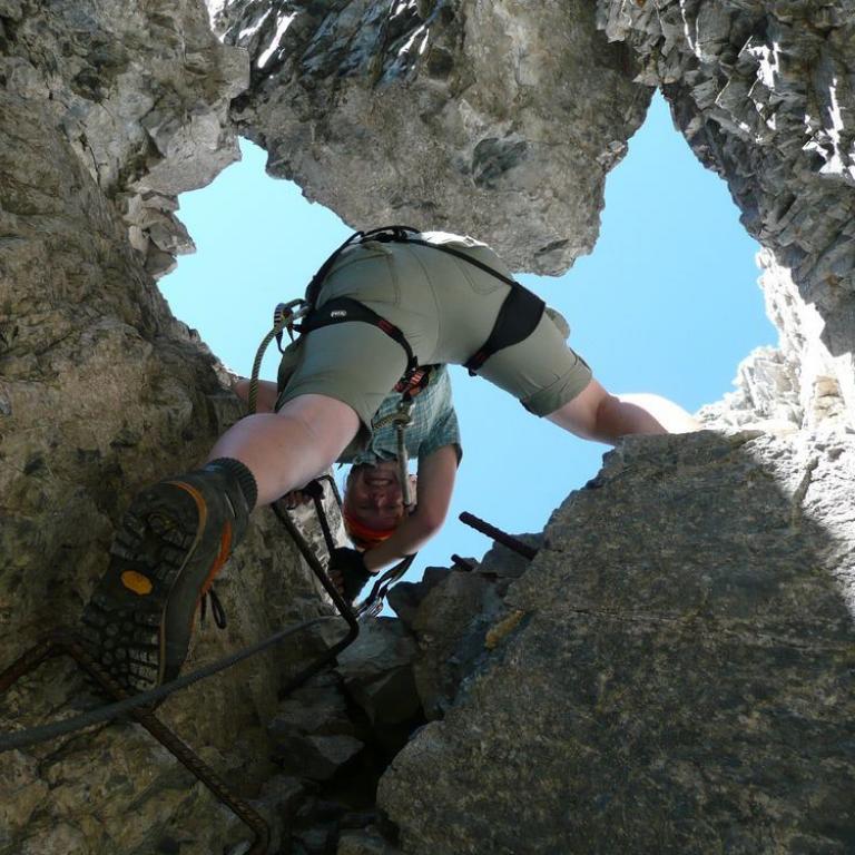 Die Ilmspitze ist das schroffe Wahrzeichen schlechthin fast unbezwingbar ragt sie formschön am Talschluss des Pinnistales empor. An ihrer Südwestkante zieht sich der 1986 errichtete Klettersteig durch ein Labyrinth aus steilen Platten, Türmen und Scharten direkt zum Gipfel hinauf. Aber auch der Spreizschritt über eine tiefe Rinne, der Klemmblock-Kamin und der Ausstiegsgrat lassen keine Wünsche offen. Vom Gipfel hat man - wie könnte es anders sein - ein wunderbares Panorama in dolomitenartiger Umgebung. Stellenweise sehr ausgesetzt. Das letzte Steigdrittel muss wieder abgestiegen werden (max. B/C). Auch der weitere Abstieg ist anspruchsvoll und ausgesetzt.