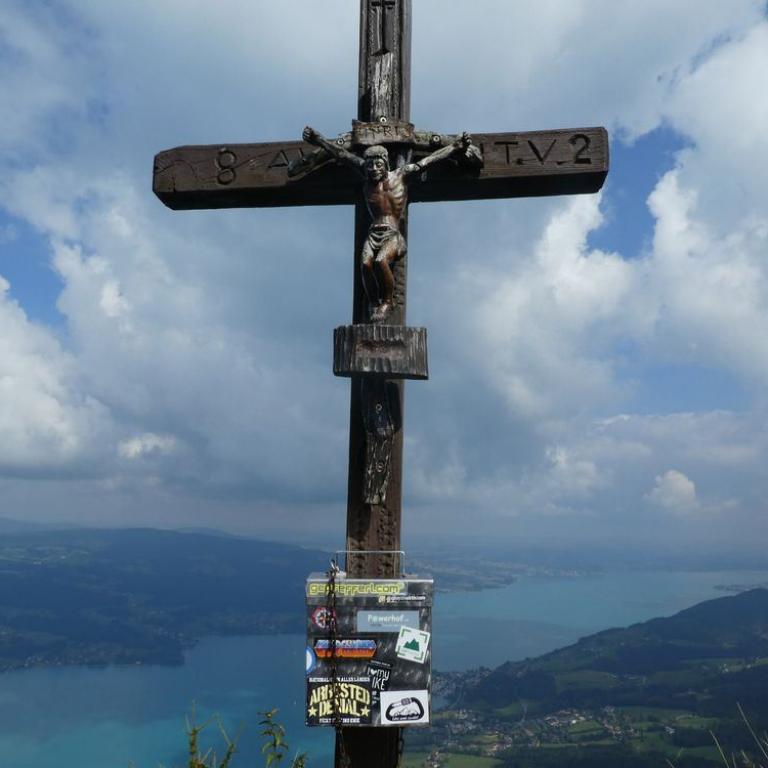Schöner, langer und nicht zu schwerer Klettersteig auf den Mahdlgupf direkt beim Attersee. Die Tour, vorbei an der mächtigen "Weißen Wand", erfordert etwas Kondition - fast 1200 Seilmeter führen zum Ausstieg direkt neben dem Gipfel! Im Mittelteil ist die Kletterei steil und tlw. etwas ausgesetzt. Nach einer Rast im sog. "Wald" folgt ein langer Gratabschnitt, welcher im Grunde eine schöne Wanderung mit Seeblick und kurzen, steilen Klettersteigpassagen darstellt. Am Ende hantelt man sich an der wieder etwas steileren Schlusswand hinauf zum Gipfel. Der Klettersteig machte uns viel Spaß. Da dies nicht unser erster Klettersteig war, sausten wir doch ziemlich schnell nach oben, konnten aber trotzdem die schöne Aussicht auf den Attersee und gegenüberliegenden Mondsee genießen. Nach knapp 2 Stunden standen wir dann auch schon auf dem schönen Aussichtsgipfel: Eine gemütliche Brotzeit in der Sonne durfte natürlich nicht fehlen. Vom Ausstieg neben dem Gipfelkreuz stiegen wir unterhalb der Mahdlschneid mehr oder weniger am Grat zur Scharte vor dem Schoberstein ab. Dort weiter auf dem Wanderweg (kurz seilversichert) hinunter in den Wald und entlang des gut markierten Weges zurück nach Weißenbach. Gesamt benötigten wir 4 Stunden. 30 Minuten Zustieg, 2 Stunden Klettersteig und 1 Stunden Abstieg. In Seewalchen am Nordufer des Sees gab machten wir noch kurz Halt um eine Kleinigkeit zu essen und trinken, bevor wir wieder die Heimreise antraten.