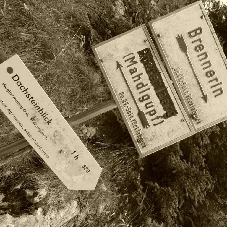 Da unsere Zwerge Urlaub bei Omi und Opa machten, entschlossen wir uns einen Klettersteig zu gehen. Das Wetter sollte so lala passen und wir hofften auf Sonne und keinen Regen. Die Wahl fiel auf die Empfehlung eines Bergsteigerkumpels, den Mahdlgupfklettersteig. Wir fuhren schon früh über Passau, Bad Füssing bis zum Attersee und von dort an der Ostküste bis Weißenbach, wo wir unser Auto am Wanderparkplatz kurz vor der Ortschaft parkten. Wir marschierten auf dem Nikoloweg unter den Felsen entlang. Beim Jaga-Woferl-Graben (Tafel C des Schutzwald-Lehrpfades) stiegen wir rechts steil zum Einstieg auf. Nach knapp einer halben Stunde standen wir auch schon am Einstieg des Mahdlgupf Klettersteiges: