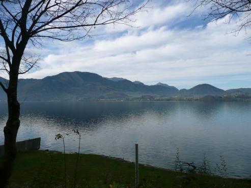 A3 Richtung Passau nach Gmunden am Traunsee in Österreich und am Ostufer bis zum Ende der Fahrmöglichkeit. Es gibt einen Parkplatz und einen Zugang zum See (Höhe 430 m).
