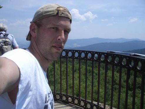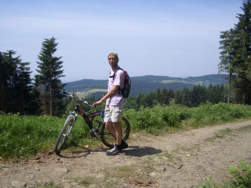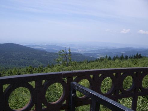 Die Aussicht ist vom Aussichtsturm aus einfach genial, man sieht sogar in der Ferne das Gebirge. Nach einer kurzen Brotzeit (2 Äpfel) fuhr ich dann wieder über Stock und Stein abwärts zum Schuhfleck (892 Meter Höhe). Von dort gings dann wieder über Forststraßen zum Grandsberg und dann über die Straße in rasanter Geschwindigkeit wieder abwärts nach Schwarzach.