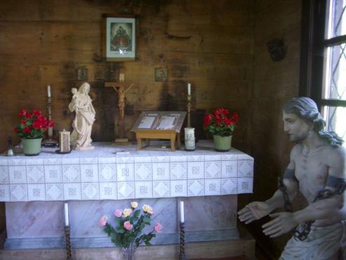 Kurz vor Englmar bog ich ab nach Rettenbach. Von dort gehts dann steil nach oben den, Radweg 45 nach Kalteck und Schuhfleck. Irgendwann gehts dann nur noch einen Wanderweg weiter und es wurde immer schwieriger zu fahren. Irgendwie ging mir dann der Weg aus und ich schob durch Sträucher und Wurzeln mein Rad weiter nach oben. Nach hartem Kampf erreichte ich wieder eine Forststraße, auf der ich dann an einer Kapelle vorbei zum Hirschenstein kam. Der Hirschenstein hat eine Höhe von 1095 Metern. Dort ging es zu als gäbe es etwas umsonst.