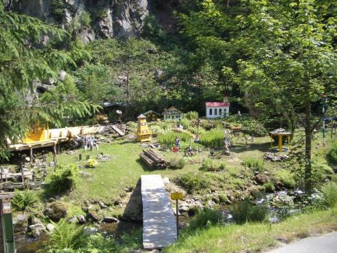 Kurz vor Englmar bog ich ab nach Rettenbach. Von dort gehts dann steil nach oben den, Radweg 45 nach Kalteck und Schuhfleck. Irgendwann gehts dann nur noch einen Wanderweg weiter und es wurde immer schwieriger zu fahren. Irgendwie ging mir dann der Weg aus und ich schob durch Sträucher und Wurzeln mein Rad weiter nach oben. Nach hartem Kampf erreichte ich wieder eine Forststraße, auf der ich dann an einer Kapelle vorbei zum Hirschenstein kam. Der Hirschenstein hat eine Höhe von 1095 Metern. Dort ging es zu als gäbe es etwas umsonst.