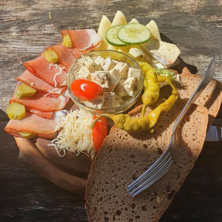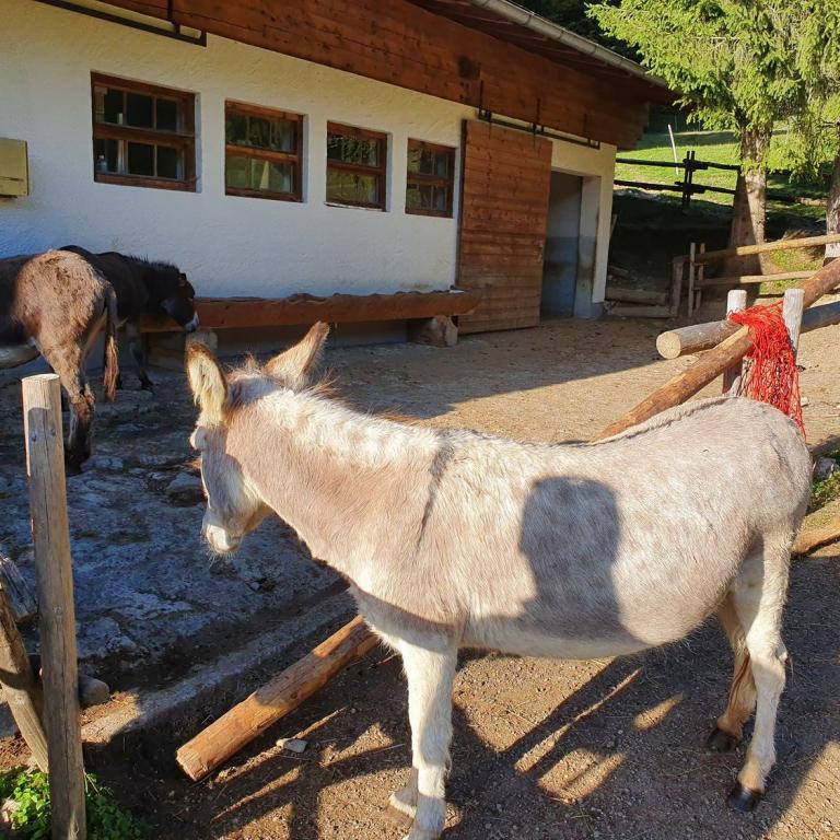 Während die kleinen Wanderer viel Freude mit den Tieren haben, kann die almtypische Brotzeit, bestehend aus kräftigen Käs- und Speckbretteln oder auch Suppen mit Knödeln oder Pfannkuchen, bestellt und frisch zubereitet werden.