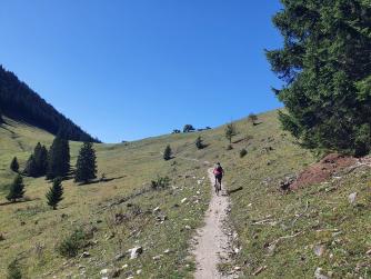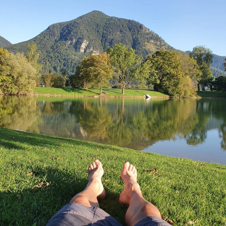 Über den Forstweg fährt man ab der Feldlahnalm zuerst wieder ein Stück nach oben, um es dann nach unten bis Oberwössen laufen zu lassen. Zuerst durch den Wald und dann über schöne Almwiesen gelangt man bis zum großen Wanderparkplatz von Oberwössen. Neben der Hauptstraße nach Unterwössen befindet sich ein Fahrradweg. Ab Unterwössen fährt man am besten auf dem Radweg an der Tiroler Ache bis nach Marquartstein. Von dort weiter nach Grassau. Wenn man am Reifinger See geparkt hat, bietet sich dort eine Einkehr in der Seewirtschaft an. Hier gibt es Flammkuchen und kühle Getränke und einen netten Wirt...