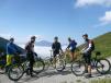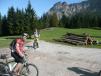 Die Tour starteten wir ab der Ferienwohnung meiner Eltern in Grassau. Brigitte, Emma und ich waren schon seit Donnerstag hier und unsere Freunde kamen um ca. 9 Uhr zu uns. Ich war leider nicht fit, da mich ein Virus bis vor 2 Tagen ans Bett gefesselt hatte. Trotzdem wollte ich die Tour nicht absagen, weil sich schon alle darauf gefreut hatten. Bei Frühnebel und eisigen 10 Grad fuhren wir den Radweg nach Bergen. Von hier fuhren wir auf der Straße zum Wanderparkplatz Kohlstadt. Von hier ging es dann einen Forstweg weiter, bis wir zu einer Abzweigung in Richtung Birkenmoos kamen. Teilweise ging es relativ steil und steinig nach oben bis wir eine herrliche Almenlandschaft erreichten. Von hier fuhren wir eine Forststraße leicht nach unten bis zur Abzweigung Jochbergalm. Den letzten Kilometer mussten wir über einen Wurzeltrail und zum Schluß noch eine steile Almwiese nach oben, bis wir die Alm auf 1276 m erreicht hatten. Hier kehrten wir natürlich ein und genossen Weißbier, Käsebrot und Sonne. Über einen kleinen Wanderpfad fuhren wir den Jochbergsattel in Richtung Marquartstein bis wir wieder auf eine Forststraße gelangten. Diese führte uns bis zu einer Abzweigung. Hier radelten wir wieder 100 Hm nach oben bis wir die Agergschwendt Alm auf 1040 m erreicht hatten. Hier warteten wir auf unsere Wandergruppe, die teilweise bis zum Hochgernhaus oder Hochgern gewandert waren. Auch hier genossen wir wieder Sonne und Weißbier. Rasant fuhren wir dann eine Forststr. nach unten bis wir Marquartstein erreichten. Von hier fuhren wir auf dem Radweg zurück nach Grassau.