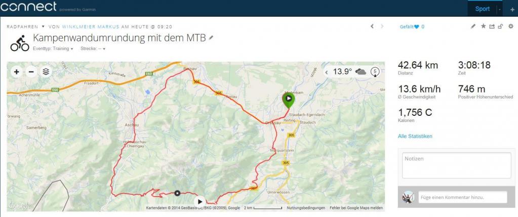 Brigitte und ich entschlossen uns nochmals ein MTB auzuleihen, da wieder herrliches Wetter vorhergesagt wurde. Um 9 Uhr startete ich zur Tour während Brigitte mit Emma zum Einkaufen ging. Am Nachmittag tauschten wir und ich kümmerte mich um Emma und Brigitte fuhr die gleiche Tour. Zuerst ging es über kleine Straßen nach Marquartstein und von dort über Trails weiter an der Zellerwand vorbei bis Mühlau. Von hier führte eine Forststraße immer entlang am idyllischen Dalsenbach zu dein Dalsenalmen auf 1100 m. Hier schien die Sonne und die Almenlandschaft zeigte sich von seiner schönsten Seite. Nach den Almen musste noch ein Pass überwunden werden, bevor es einen steilen Weg nach Hainbach ging. Von hier führte ein klasse Trail nach Aschau und von dort über den Radweg zurück nach Grassau.