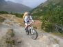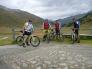 Schon um 7 Uhr gingen wir zum Frühstücken. Gestärkt starteten wir um kurz vor 8 Uhr unsere weitere Tour. Zuerst mussten wir noch ein Stück nach oben. Nach ca. 100 Hm begann eine rasante Fahrt knapp 800 Hm ins Tal, teilweise Trail und teilweise schmale Teerstraße, bis wir Santa Maria auf 1375 m erreichten. Das Wetter sah vielversprechend aus: Sonne und nur wenige Wolken. Ab Santa Maria führte uns eine Forststraße bis zum Pass "Döss Radond" auf 2236 m. Hier machten wir nach knapp 4 Stunden Fahrt erst einmal Pause. Das Panorama war herrlich. Links und rechts Dreitausender, Almwiesen und Sonne. Von hier fuhren wir zuerst auf einem Forstweg, der später in einen pfiffigen Singletrail überging, bis zum Lago di Cancano auf 1950 m.