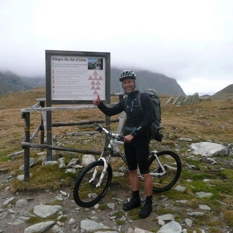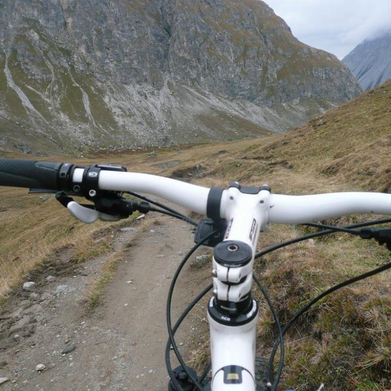 Zuerst radelten wir auf einem Forstweg und ab Alp Astras fuhren wir einen Singletrail, der viel Spaß machte. Das Wetter hielt immer noch her. Teilweise regnete es leicht, aber auch die Sonne besuchte uns immer wieder. Nach ca. 4 Stunden Fahrt kamen wir zum Pass da Costainas, dem höchsten Punkt des heutigen Tages, auf 2251 m. Von hier führte uns ein steiler Pfad nach unten, bis wir auf knapp über 1900 m die Ortschaft Lü erreichten, wo ich die Pension "Hirschen Lü" vorab reserviert hatte. Nach einer wohltuenden Dusche gingen wir zum gemütlichen Teil über. Es gab Wein, Bier und leckere Spaghetti.