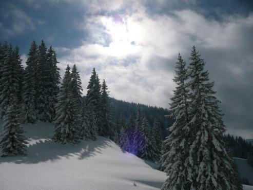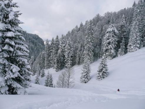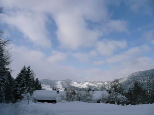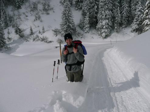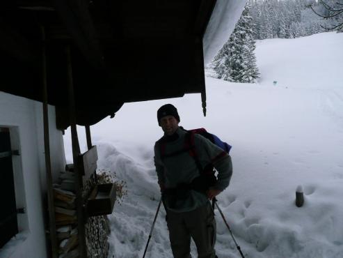 Wir fuhren gleich nach dem Frühstück in unserem Hotel am Walchsee nach Sachrang (ca. 30 Minuten Fahrt) und parkten unser Auto am Wanderparkplatz Geigelstein. Wir zogen uns warm an und legten die Schneeschuhe an. Zuerst ein kurzes Stück auf einer Forststraße, bogen wir dann nach links ab. Nach ein paar weiteren Minuten gelangten wir zu einer kleinen Diensthütte. Hier stößt der Weg von Huben auf die Forststraße. Weiter oben nahmen wir die Abkürzung zur Talalm, die aber etwas anstrengend wegen der Schneehöhe war. Über Almen ging es dann weiter wieder in den Wald hinein. Kurze Zeit später erreichten wir ein Schild mit der Aufschrift: "Priener Hütte 15 Minuten". Die letzten Meter führten uns steil zur Hütte. Die 3 Stunden Aufstieg durch den Tiefschnee waren doch schon etwas anstrengend, so das wir uns entschlossen nicht weiter auf den Geigelstein zu wandern, was nochmals 400 Höhenmeter gewesen wären. Wir machten es uns in der warmen Gaststube bequem. Nach einer Stärkung ging es wieder auf dem Aufstiegsweg ins Tal zurück. Nach ca. 2 Stunden erreichten wir wieder unseren Wanderparkplatz.