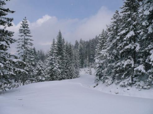 Keine Lawinengefahr, da man sich immer unterhalb der Baumgrenze bewegt