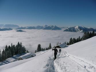 Neben der entsprechenden Ausrüstung (Ski- oder Tourenhose, Softshelljacke, Handschuhe, Mütze, Essen und Trinken) braucht man eigentlich nur noch Trekkingstiefel und Skistöcke (mögl. Höhenverstellbar).