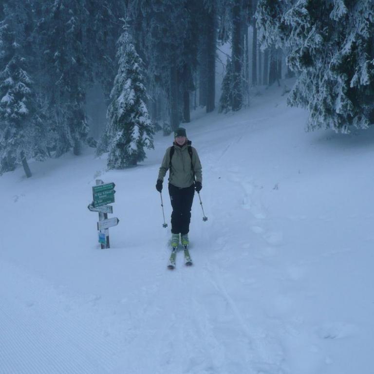 Tourbericht: Da ich am Silvesterabend schon um halb 11 im Bett war und auch Isabella und Werner fit genug für eine Tour waren, starteten wir am Parkplatz in Brennes. Zuerst rutschten wir bis zum kleinen Arbersee, von wo wir den Skitourenspuren bis zur Chamer Hütte auf 1298 m folgten. Hier kehrten wir ein und genossen Erbsensuppe und Osser Weißbier. Dann stiegen wir zum großen Arber auf, wo uns der Böhmische Wind um die Ohren blies. Aussicht hatten wir leider keine, nur ganz kurz blitzte die Sonne durch den dichten Nebel. Über die Piste fuhren wir zurück zum Parkplatz, wo wir wieder die Heimreise antraten.