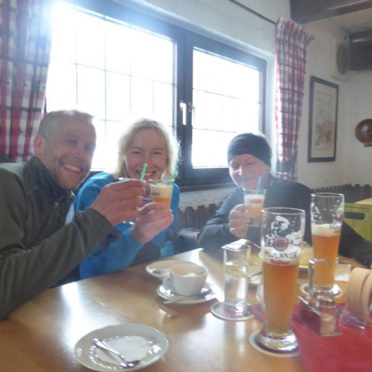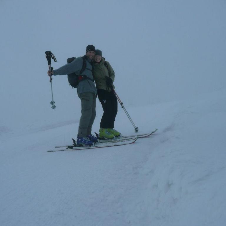 Tourbericht: Mit Hans und Margit fuhren Brigitte und ich am Ostermontag nach Brennes. Um kurz nach 9 Uhr standen wir bei leichten Sonnenschein auch schon auf den Tourenski. Von Brennes wollten wir eigentlich zum kleinen Arbersee und von dort auf den Kleinen Arber, aber gleich bei der ersten Gabelung ging ich den meisten Spuren nach, was ein Fehler war und wir uns immer mehr Richtung Großen Arber bewegten. Zuerst waren wir noch auf einer Forststraße, die wir dann aber verließen und uns unseren eigenen Weg suchten. Dies machte viel Spaß, obwohl wir teilweise ziemlich steile Hänge bewältigen mussten. Unten war der Schnee noch vereist und ging weiter oben immer mehr in Pulver über. Nach ca. 2 Stunden fing es zu schneien an. Wir stiegen weiter nach oben, bis wir kurz unterhalb des Gipfels wieder auf die Piste kamen. Der große Arber war im Nebel und ziemlich eisig. Trotzdem freuten wir uns über den Gipfelsieg. Über die Piste fuhren wir ab und auf einmal gaben die Wolken den Arber frei und die Sonne begrüßte uns. Wir kehrten noch in der Sonnenalm ein, bevor wir uns wieder auf den Nachhauseweg machten.