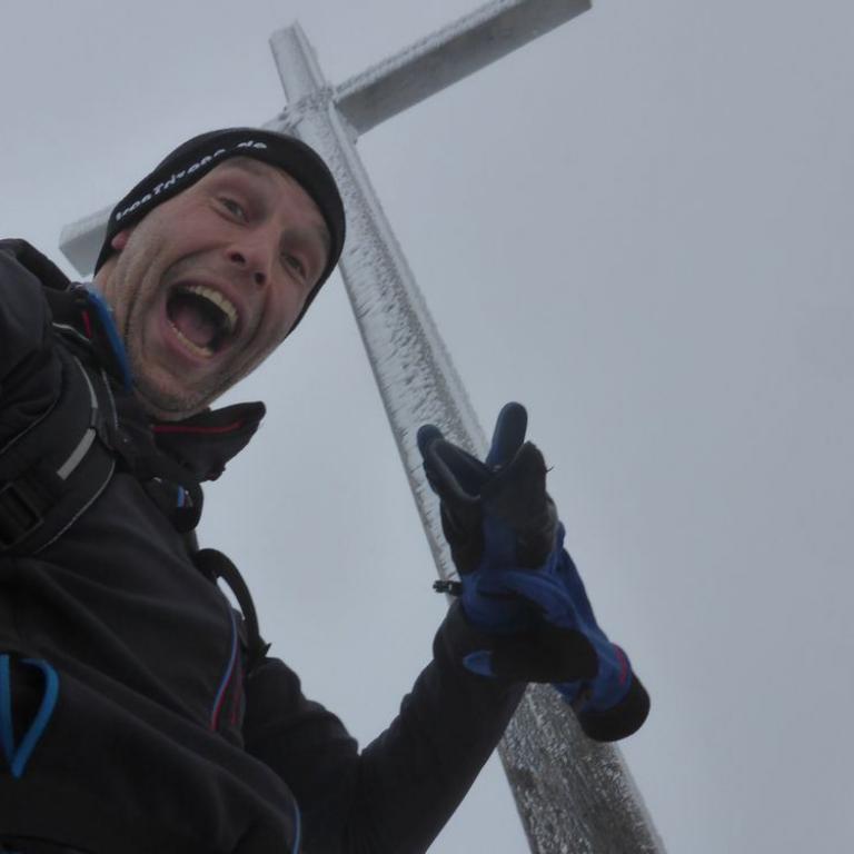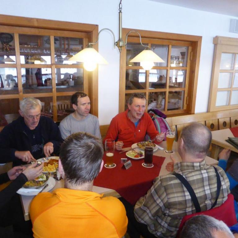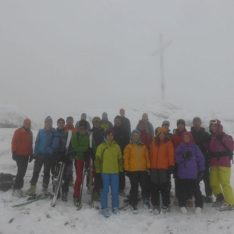 Tourbericht: Die Suche nach dem Schnee fand für die Organisatoren des Alpenvereins Straubing unter erschwerten Bedingungen statt. Bis vor ein paar Tagen gab es keinen Schnee und dazu Temperaturen weit im Plusbereich. Aber für unsere erste Skitour in diesem Winter schüttete Frau Holle doch ein wenig Schnee aus ihren Kissen. In den Alpen fiel dies weniger ergiebig als im Bayerischen Wald aus. Also was lag da für uns nahe? Natürlich der Arber mit seinen 1456 m. Ernst organisierte einen Treffpunkt an der Kletterhalle in Straubing und für die "Waidler" einen in Steinburg, von dem wir dann in Richtung Brennes am Arber fuhren. Bei herrlichem Nebel, aber mit viel Spaß packten wir am Parkplatz an der Talstation der Arberbahn unsere Ski aus den Autos. Schon konnte es auch los gehen. Viel Schnee gab es nicht, aber für eine lustige Skitour mit den ganzen Alpenvereinslern reichte es. Da auch nicht die großen Lawinen zu erwarten waren, ließen wir natürlich die LVS Geräte zu Hause :-) Über die Osthangstrecke kämpften wir uns nach oben. Ein paar Trainingsverrückte voraus und der Rest hinterher :-) Bis wir uns versahen standen wir auf dem vereisten Arbergipfel. Wir hatten schon Angst das es ausnahmsweise windstill wäre, aber der Böhmische blies und ganz schön um die Ohren. Natürlich durfte ein gemeinschaftliches Gipfelfoto nicht fehlen. Die Abfahrt machte nicht so richtig viel Spaß. Teilweise brauchte man die "Stoaski", teilweise war es vereist und Dreck schaute hervor. Im Tal angekommen wurden die Felle wieder aufgezogen und erneut bestiegen wir den Arber. Die meisten gingen gleich ins reservierte Arberschutzhaus, nur ein paar stiegen nochmals auf den Gipfel und wurden mit Sonne und blauem Himmel belohnt. Schnell zog es aber leider wieder zu. In der Hütte genossen alle eine "gscheite" Brotzeit mit Bier und natürlich gab es wieder viel zu erzählen. Respekt an Jupp, der auch ein drittes Mal den Aufstieg in Rekordzeit unterhalb 30 Minuten schaffte. Zusammen fuhren wir dann am Nachmittag ins Tal ab, wo es wieder nach Hause ging.
