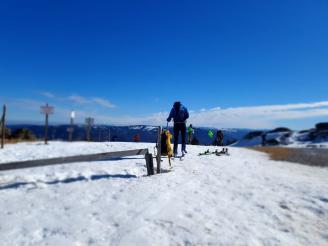 Tourbericht: Brigitte und ich entschlossen uns kurzfristig zu einer Skitour am Arber. Leider hatte es am Parkplatz Brennes sehr wenig Schnee. Wir versuchten über den kleinen Arbersee zu gehen, aber wir fanden leider keinen geeigneten Weg mit genügend Schnee, so das wir auf die Piste ausweichen mussten. Wir gingen bis kurz unter den Gipfel und mussten dann umdrehen, da wir sonst nicht rechtzeitig zu unserem nächsten Termin kommen würden. Trotzdem genossen wir die Sonne und die herrliche Aussicht auf das umliegende Arberland.