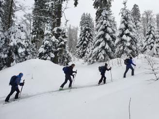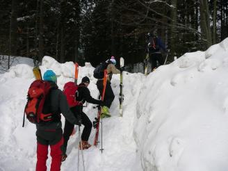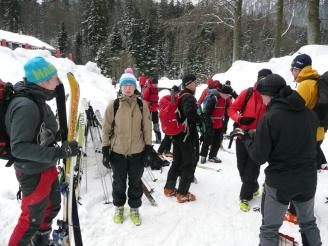 Auch eine kurze Einweisung in Lawinenverschüttetensuche durfte nicht fehlen. Um 13 Uhr erreichten alle wieder wohlbehalten den Parkplatz. Auf der Rückfahrt kehrten wir noch in einem gemütlichen Gasthaus bei einem gutem Wilderer Bier und Wilderer Eintopf ein.