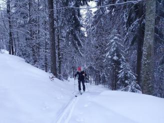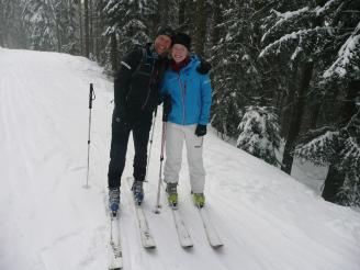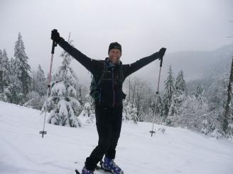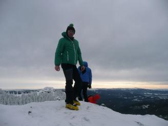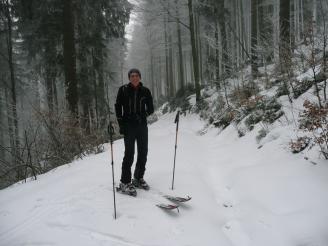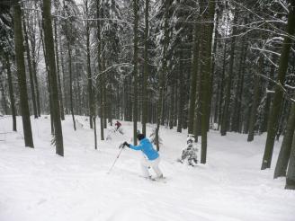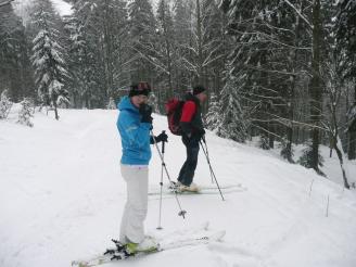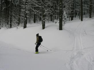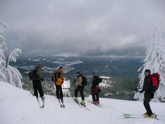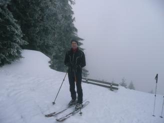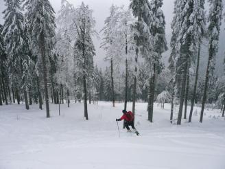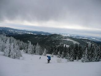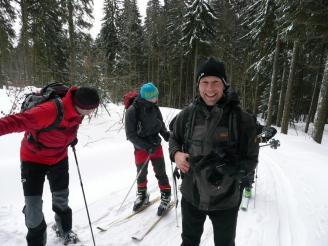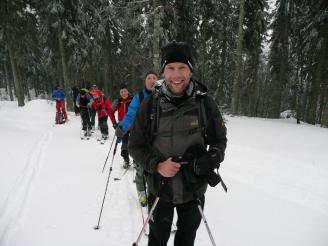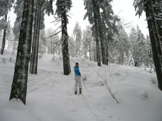 Nach 1 1/2 Stunden standen wir auch schon auf dem Gipfel des großen Arbers. Nach einer kurzen Pause machten wir uns für die Abfahrt bereit. Leider war der Schnee ziemlich harschig, erst weiter im Tal wurde er pulvriger. Trotzdem machte uns die Abfahrt durch den Wald viel Spaß.