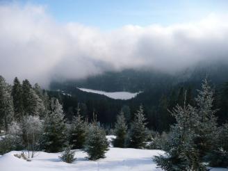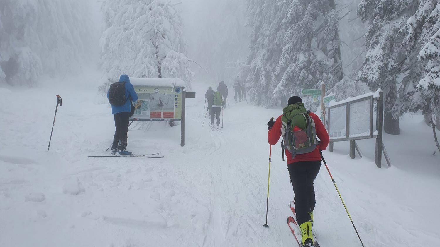 Tourbericht: Skitour mit dem Alpenverein Sektion Straubing: Motto - Auf der Suche nach dem Schnee. Da das Wetter leider in den Voralpen zu stürmisch war, entschieden sich die Organisatoren dieser Tour den Großen Arber zu besteigen. Um halb 9 Uhr am Heiligen Drei Könige Tag, trafen wir uns alle in Steinburg und los ging es zum Parkplatz am Großen Arbersee.