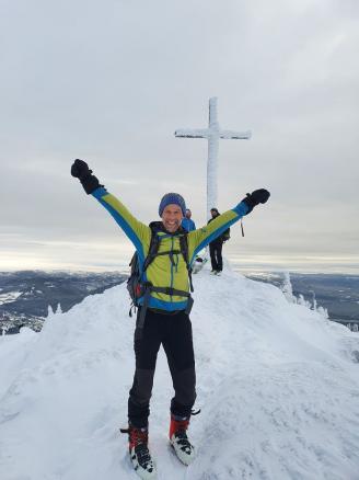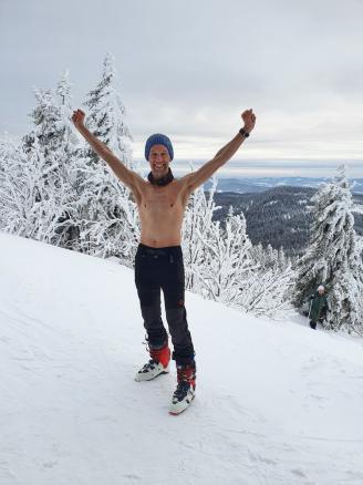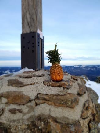 Am Gipfel fanden wir eine Ananas, die ein bekannter Trailläufer der Gegend auf verschiedensten Gipfeln deponiert um die Leute zum Lachen zu bringen, was auch immer klappt. An der Zwiesler Hütte fanden wir ganz zufällig eine Gipfelhalbe in unserem Rucksack :-) Auf direktem Weg fuhren wir über die vereisten Hänge zum Parkplatz ab. Eine schöne Nachmittagsskitour mit Hans.