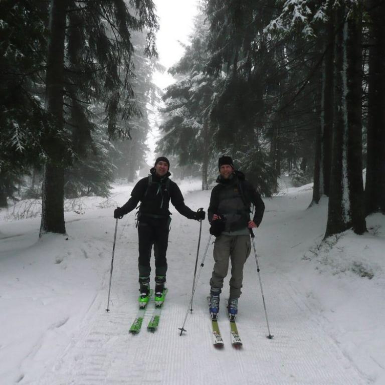 Tourbericht: Da ich am Silvesterabend schon um halb 11 im Bett war und auch Isabella und Werner fit genug für eine Tour waren, starteten wir am Parkplatz in Brennes. Zuerst rutschten wir bis zum kleinen Arbersee, von wo wir den Skitourenspuren bis zur Chamer Hütte auf 1298 m folgten. Hier kehrten wir ein und genossen Erbsensuppe und Osser Weißbier. Dann stiegen wir zum großen Arber auf, wo uns der Böhmische Wind um die Ohren blies. Aussicht hatten wir leider keine, nur ganz kurz blitzte die Sonne durch den dichten Nebel. Über die Piste fuhren wir zurück zum Parkplatz, wo wir wieder die Heimreise antraten.