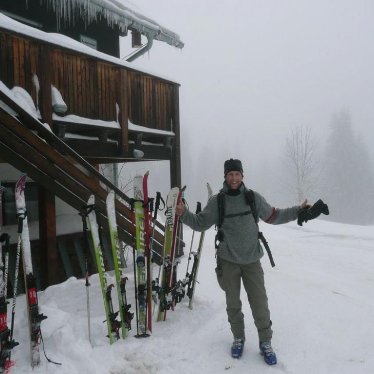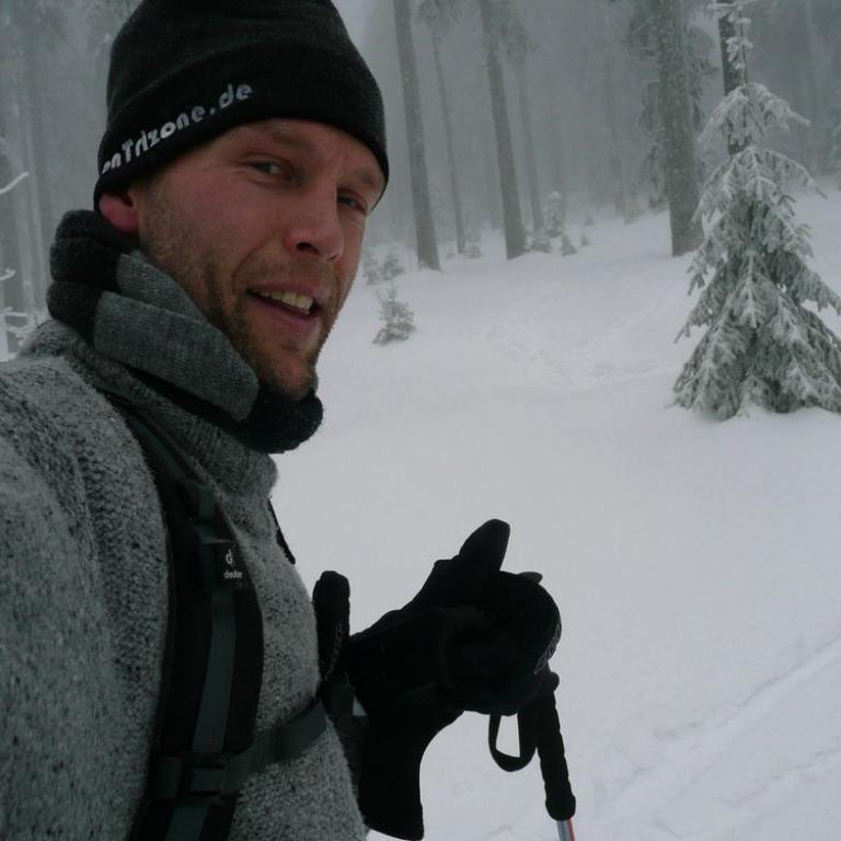 Tourbericht: Die Suche nach dem Schnee fand für die Organisatoren des Alpenvereins Straubing unter erschwerten Bedingungen statt. Bis vor ein paar Tagen gab es keinen Schnee und dazu Temperaturen weit im Plusbereich. Aber für unsere erste Skitour in diesem Winter schüttete Frau Holle doch ein wenig Schnee aus ihren Kissen. In den Alpen fiel dies weniger ergiebig als im Bayerischen Wald aus. Also was lag da für uns nahe? Natürlich der Arber mit seinen 1456 m. Ernst organisierte einen Treffpunkt an der Kletterhalle in Straubing und für die "Waidler" einen in Steinburg, von dem wir dann in Richtung Brennes am Arber fuhren. Bei herrlichem Nebel, aber mit viel Spaß packten wir am Parkplatz an der Talstation der Arberbahn unsere Ski aus den Autos. Schon konnte es auch los gehen. Viel Schnee gab es nicht, aber für eine lustige Skitour mit den ganzen Alpenvereinslern reichte es. Da auch nicht die großen Lawinen zu erwarten waren, ließen wir natürlich die LVS Geräte zu Hause :-) Über die Osthangstrecke kämpften wir uns nach oben. Ein paar Trainingsverrückte voraus und der Rest hinterher :-) Bis wir uns versahen standen wir auf dem vereisten Arbergipfel. Wir hatten schon Angst das es ausnahmsweise windstill wäre, aber der Böhmische blies und ganz schön um die Ohren. Natürlich durfte ein gemeinschaftliches Gipfelfoto nicht fehlen. Die Abfahrt machte nicht so richtig viel Spaß. Teilweise brauchte man die "Stoaski", teilweise war es vereist und Dreck schaute hervor. Im Tal angekommen wurden die Felle wieder aufgezogen und erneut bestiegen wir den Arber. Die meisten gingen gleich ins reservierte Arberschutzhaus, nur ein paar stiegen nochmals auf den Gipfel und wurden mit Sonne und blauem Himmel belohnt. Schnell zog es aber leider wieder zu. In der Hütte genossen alle eine "gscheite" Brotzeit mit Bier und natürlich gab es wieder viel zu erzählen. Respekt an Jupp, der auch ein drittes Mal den Aufstieg in Rekordzeit unterhalb 30 Minuten schaffte. Zusammen fuhren wir dann am Nachmittag ins Tal ab, wo es wieder nach Hause ging.
