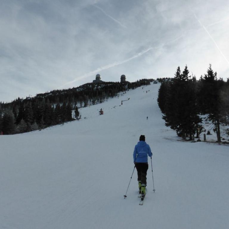 Tourbericht: Brigitte und ich entschlossen uns kurzfristig zu einer Skitour am Arber. Leider hatte es am Parkplatz Brennes sehr wenig Schnee. Wir versuchten über den kleinen Arbersee zu gehen, aber wir fanden leider keinen geeigneten Weg mit genügend Schnee, so das wir auf die Piste ausweichen mussten. Wir gingen bis kurz unter den Gipfel und mussten dann umdrehen, da wir sonst nicht rechtzeitig zu unserem nächsten Termin kommen würden. Trotzdem genossen wir die Sonne und die herrliche Aussicht auf das umliegende Arberland.