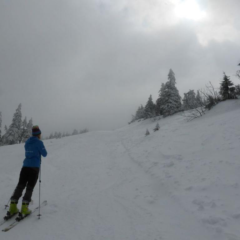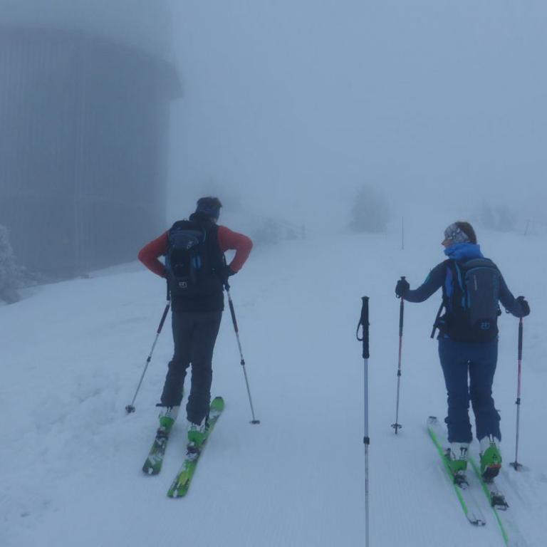 Tourbericht: Da einiges an Neuschnee lag, wollten wir dies auch ausnutzen und fuhren Mitte Dezember zum Großen Arber. Von der Talstation marschierten wir über den Osthang nach oben. Viel sahen wir beim Aufstieg nicht, da es ziemlich nebelig war und nebenbei blies uns der Wind um die Ohren. Trotzdem stiegen wir bis zum Gipfel auf und fuhren im Anschluss zurück ins Tal. Natürlich reichte uns ein Aufstieg nicht und ein zweites Mal kämpften wir uns nach oben. Auch eine Einkehr in der Eisensteiner Hütte durfte nicht fehlen. Trotz der schlechten Sicht, war es eine schöne Skitour mit Freunden...