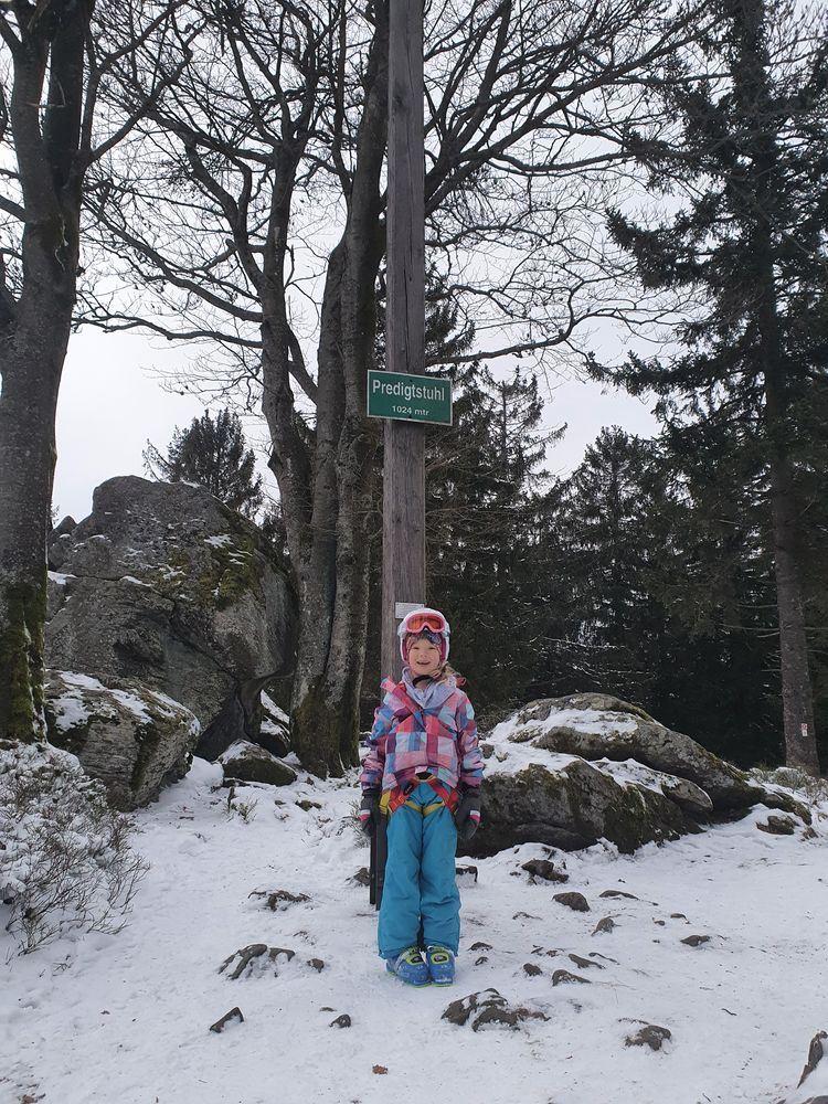 Tourbericht: Der Predigtstuhl hatte es uns angetan :-) Ab Parkplatz Markbuchen stiegen wir diesmal teilweise über den Wald und zum Schluss über die Piste auf den Gipfel. Emma und ich hatten wieder einen Klettergurt an und waren mit einem Seil verbunden. So zog ich die kleine Maus nach oben und gemeinsam sausten wir die Piste hinab. Und weil es so schön war, gingen wir in Runde Zwei :-)