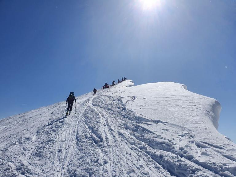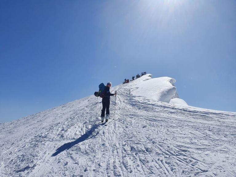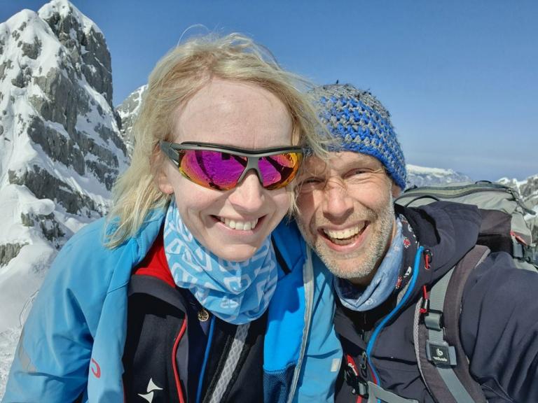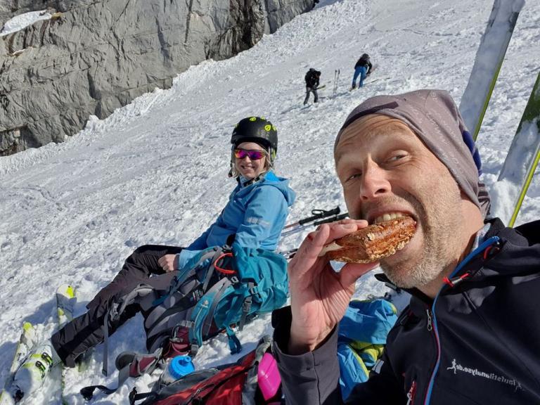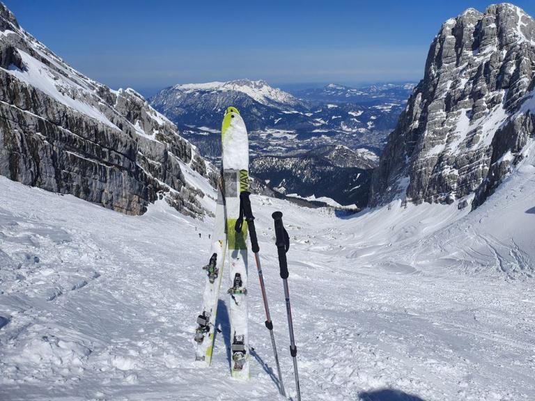 Fazit: Anspruchsvolle aber traumhafte Skitour mit Brigitte durch das Watzmannkar. Gipfelsieg mit grandiosem Ausblick auf den Watzmann, Hoher Göll, Königssee & Co.