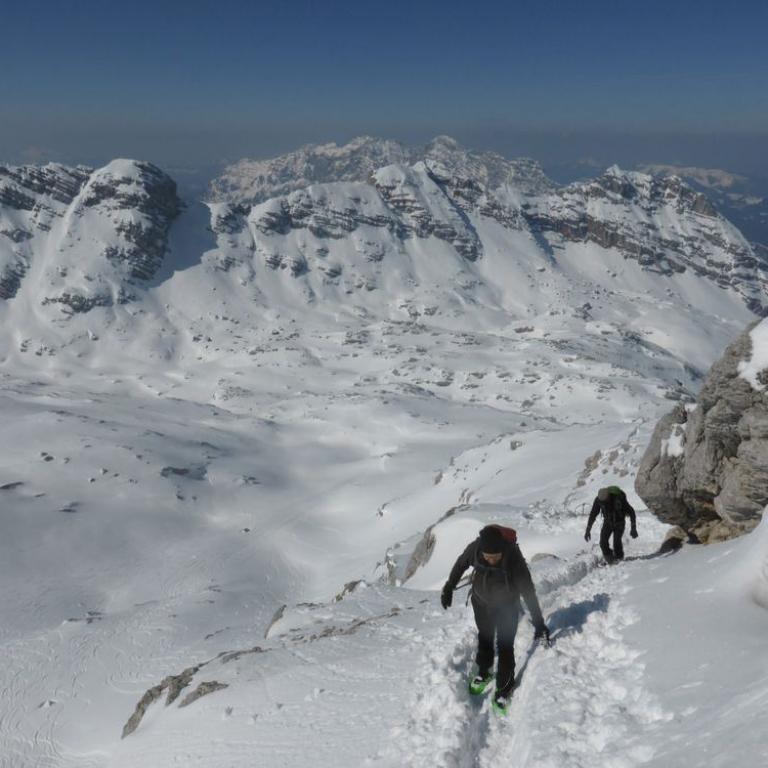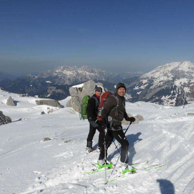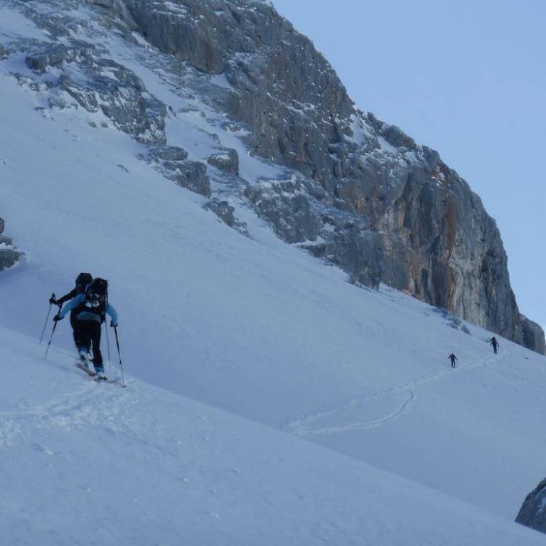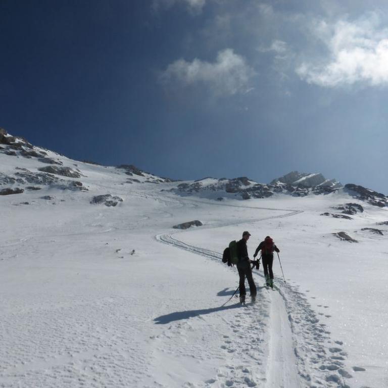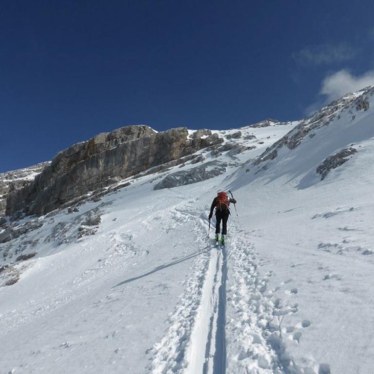 Eindrucksvolle und sehr lange Schitour die am Schluß kurze Kletterei über Felsbänder bietet. Die Tour ist aber auch bis zur Kuchelnieder (Skidepot) sehr lohnend.