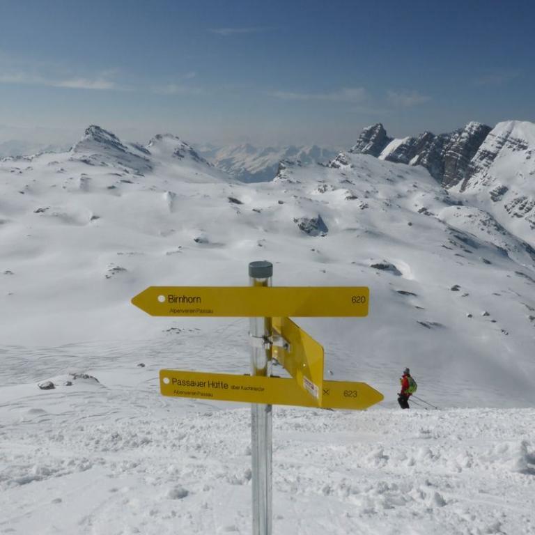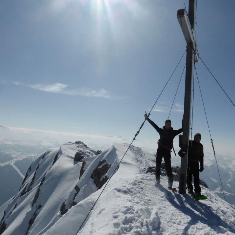 Der höchste Gipfel der Leoganger Steinberge bietet durch den tief gelegenen Ausgangspunkt im Saalachtal eine der längsten Skitouren der Gegend. Wären die 2000 Höhenmeter durchgehend ideales Skigelände, würde die Tour mit Sicherheit eine Modetour allerersten Ranges darstellen. Dass dem nicht so ist liegt wohl weniger an dem felsigen Gipfelanstieg, den man zu Fuß (bei vereisten Verhältnissen am besten mit Steigeisen) erledigt, sondern an dem fast 1000 Höhenmeter hohen Waldgürtel im unteren Teil. Macht das Fahren in dem lichten Lärchenwald oberhalb der Jagdhütte Ebersberg noch richtig Spaß, so kann dieser einem schlechteren Skifahrer mit zunehmender Gehölzdichte im unteren Teil durchaus vergehen. Wer jedoch die richtige Rinne und das möglichst noch bei gutem Schnee findet, der wird das Birnhorn als eine Super-Skitour in Erinnerung behalten.